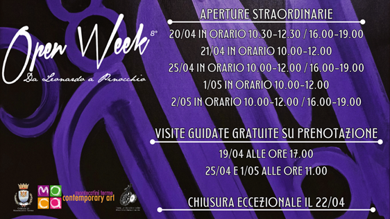 From April 18 to May 4, 2025, the appointment with Open Week returns. From Leonardo to Pinocchio, an initiative aimed at enhancing the environmental, cultural and artistic heritage of Valdinievole. The Mo.C.A. will welcome the public with a series of extraordinary openings and guided tours of the temporary Joan Miró in Montecatini Terme, a tribute to the great Catalan artist promoted in 1980 and continued until today.