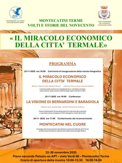 La manifestazione è curata dall’Ass. AMA MONTECATINI TERME nell’ambito dell’iniziativa culturale “Montecatini Terme volti e storie del ‘900”, che intende porre l’attenzione sulla storia della città nel periodo intercorso tra la fine del 1800 e tutto il ‘900: questo è il periodo in cui Montecatini Terme è passata dall’essere un luogo malarico noto per la presenza di fonti termali alla stazione turistica termale più famosa del mondo, raccontando attraverso testimonianze fotografiche e cronache di vita vissuta, come si è evoluta la storia della nostra cittadina, grazie allo sviluppo degli stabilimenti termali e all’incremento commerciale e culturale.