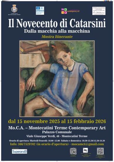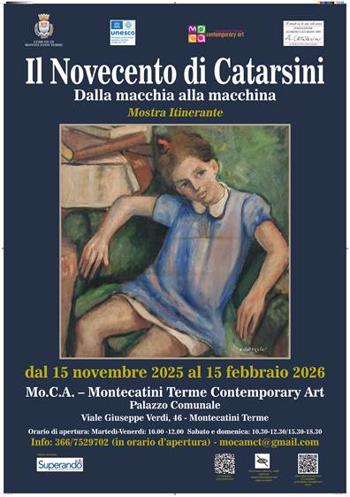 Dal 15 novembre 2025 al 15 febbraio 2026 il Mo.C.A. di Montecatini Terme ospiterà la mostra Il Novecento di Catarsini. Dalla macchia alla macchina, curata dalla Fondazione Alfredo Catarsini 1899 ETS e promossa e realizzata in collaborazione con l’Assessorato alla Cultura del Comune di Montecatini Terme.